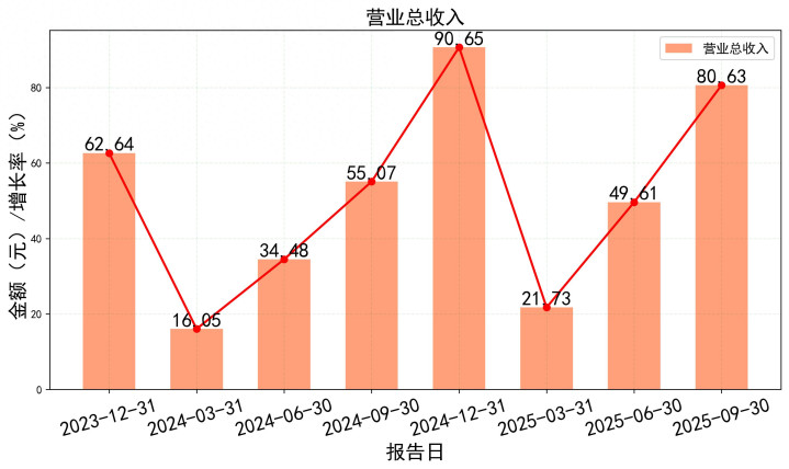 营收坐火箭:2025年前三季度,公司总收入 80.63亿元,而去年同期是55.07亿元。同比增长了46.4%! 这速度在制造业里,绝对是优等生。